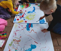 Zurück im Kloster hieß es, unter Anleitung von Sabrina Haupt-Knossalla, das eintönige Weiß des Winters durch bunte Farben zu vertreiben. Die Kinder hatten große Freude an der Pinselei und ließen ihrer Fantasie freien Lauf.